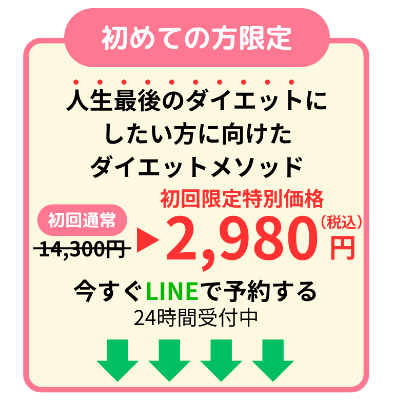 大丈夫です!痩せるためには根性や気合ではなく、「正しい方法」が必要です。そのあたりは当店が徹底的にサポートさせていただきます。
