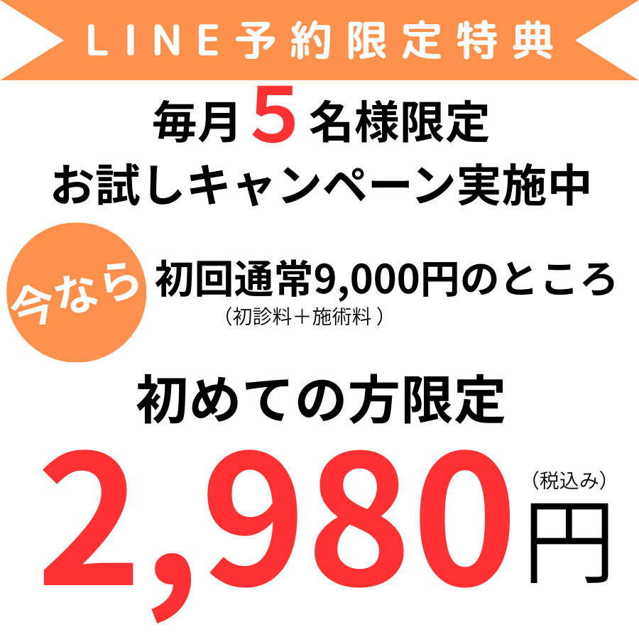 その「当院側の都合」に合わせてくれるお客様に「ありがとうございます。」の意味を込めてLINE予約限定で特別価格をご用意させていただきました。
