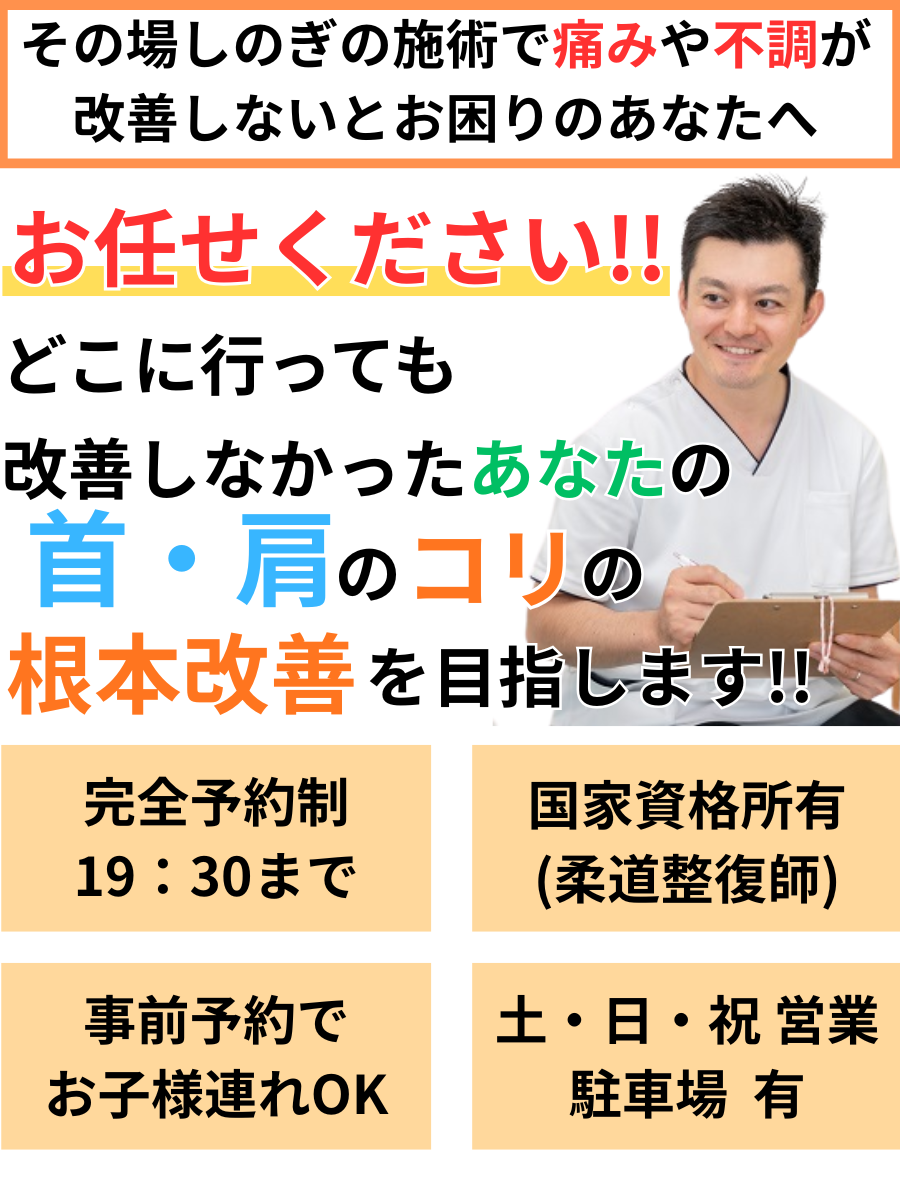 なぜ当院では、何をやっても良くならなかった「首や肩のコリ」が改善するのでしょうか?